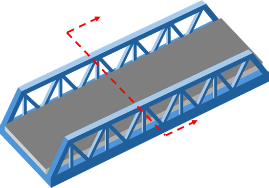 หากพิจารณาสะพาน Pony Truss Bridge ที่วางบนฐานรองรับแบบ simple span จะพบว่าแรงเค้นปกติ (normal stress) ที่เกิดขึ้นในชิ้นส่วน top chord ของโครงถักมีลักษณะเป็นแรงอัด (compressive stress) ซึ่งอาจนำไปสู่การวิบัติแบบโก่งเดาะ (buckling) ได้จากความไม่สมบูรณ์ของชิ้นส่วนโครงสร้าง เช่น ความไม่ตรงตามแนวแกนของท่อนเหล็กจากกระบวนการผลิต รวมถึงความคลาดเคลื่อนที่อาจเกิดขึ้นระหว่างการผลิตและการติดตั้งของโครงสร้าง เมื่อพิจารณาภาพตัดตามแนวการตัดที่ แสดงในภาพที่ 2 จะได้ภาพตัดตามแนวขวางสะพาน ตามภาพที่ 3