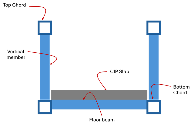 - ออกแบบคานพื้น (Floor beams) และชิ้นส่วนโครงถัก (Web members) เพื่อรับน้ำหนักบรรทุกตามที่ระบุไว้