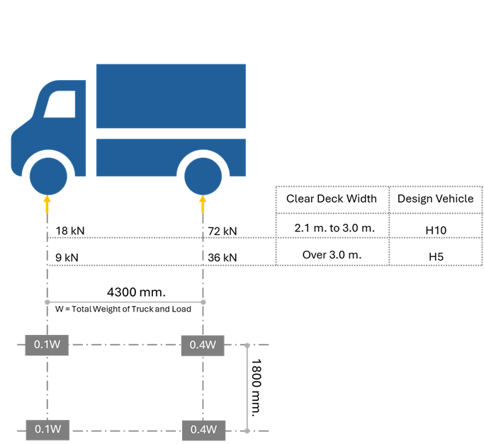 โดยน้ำหนักบรรทุกดังกล่าวมีวัตถุประสงค์เพื่อใช้ในการออกแบบโครงสร้างบริเวณตอม่อสะพาน (pier)