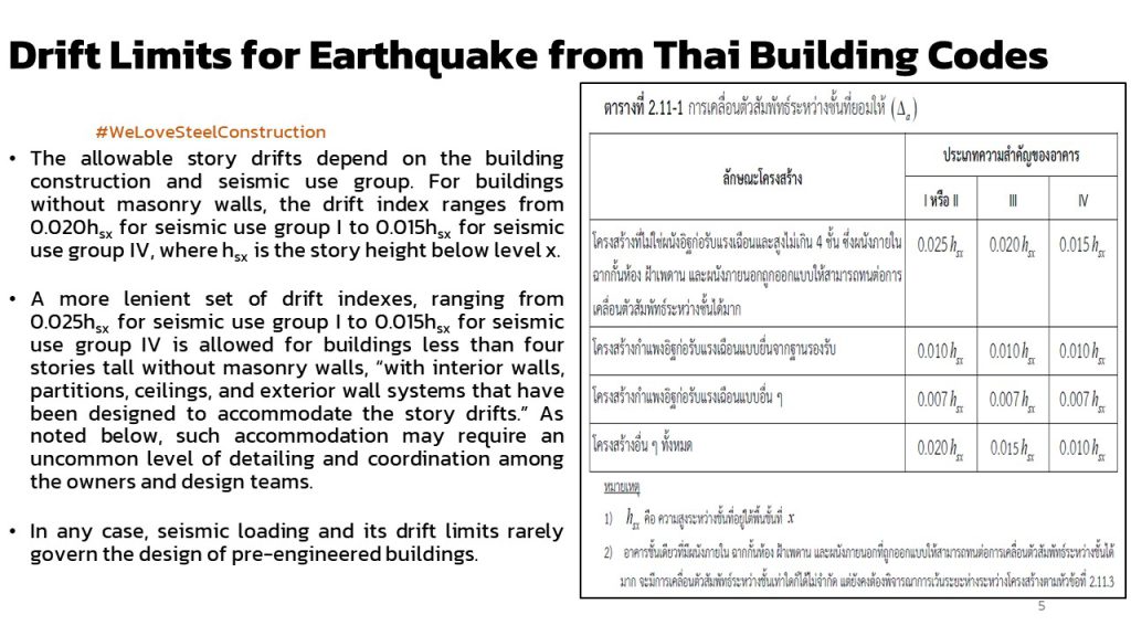 Drift Limits จากผลของแผ่นดินไหวที่กำหนดในมาตรฐานของประเทศไทย