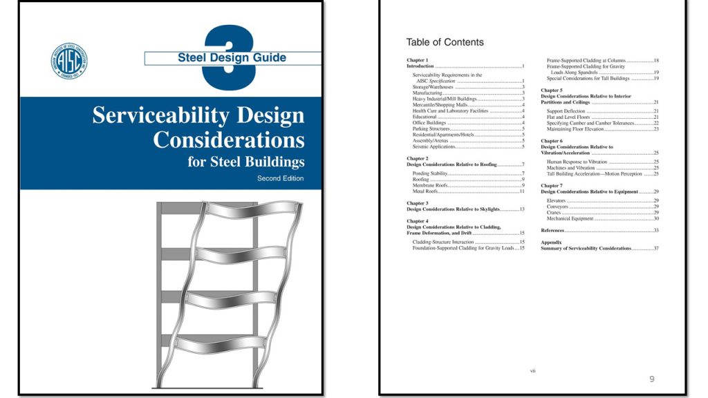 ในประเทศสหรัฐอเมริกามีแนวปฏิบัติ (AISC Design guide) สำหรับออกแบบอาคารโครงสร้างเหล็กที่เกี่ยวข้องกับความสามารถในการใช้งานได้ดี ใน design guide ได้มีการกล่าวถึงค่าการเคลื่อนตัวด้านข้างที่เหมาะสมสำหรับอาคารที่มีการใช้วัสดุห่อหุ้มอาคารประเภทต่างๆ รวมถึงโครงหลังคาเหล็กและผนังภายในอาคาร