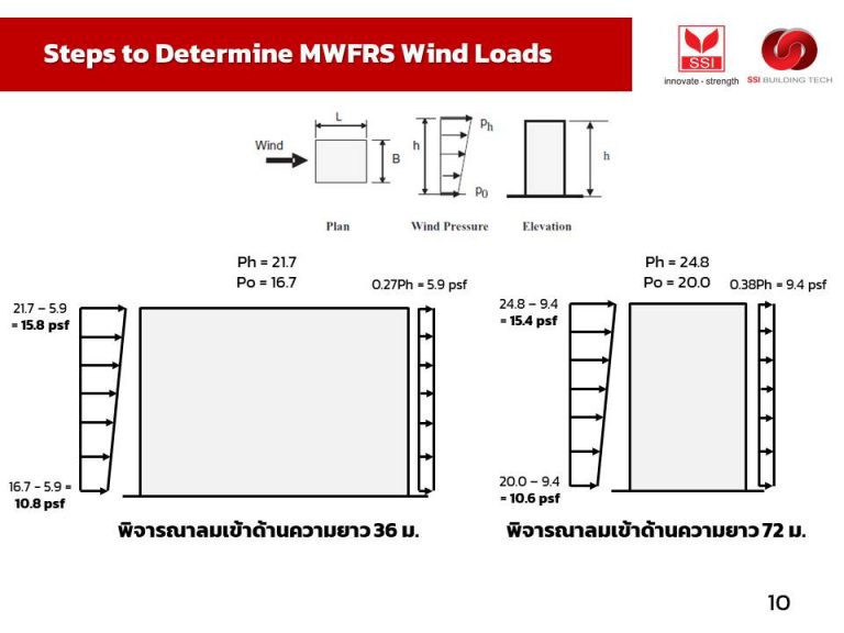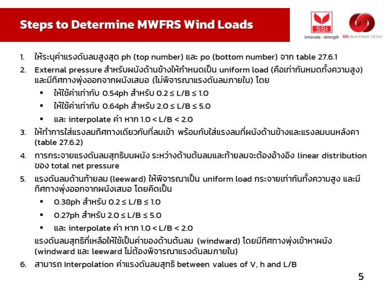 - นำค่า ph และ po ที่หักลบกับแรงดันลมด้าน leeward ก็จะได้แรงลมด้าน windward